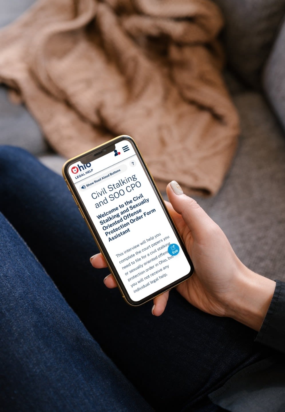 In partnership with the Supreme Court of Ohio, we developed a new tool to help people who have experienced stalking or sexual violence. Funded through a Violence Against Women Act (VAWA) grant, this tool enables stalking victims and survivors to safely access and complete the legal forms they need to obtain a civil protection order.