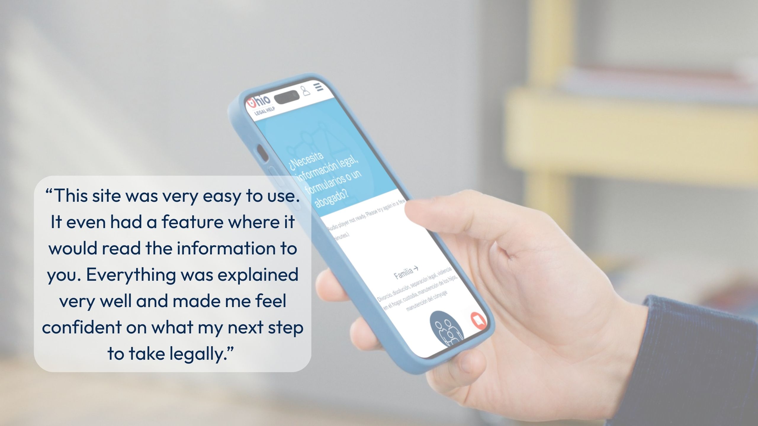 In 2024, we continued to prioritize access. We implemented text-to-speech functionality to support low-literacy users and those with different learning styles. We also expanded multi-language translation across our site, ensuring that more Ohioans can understand their legal rights.