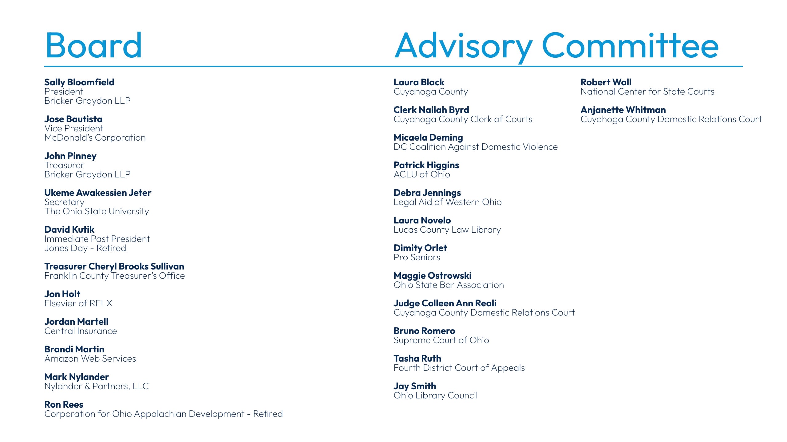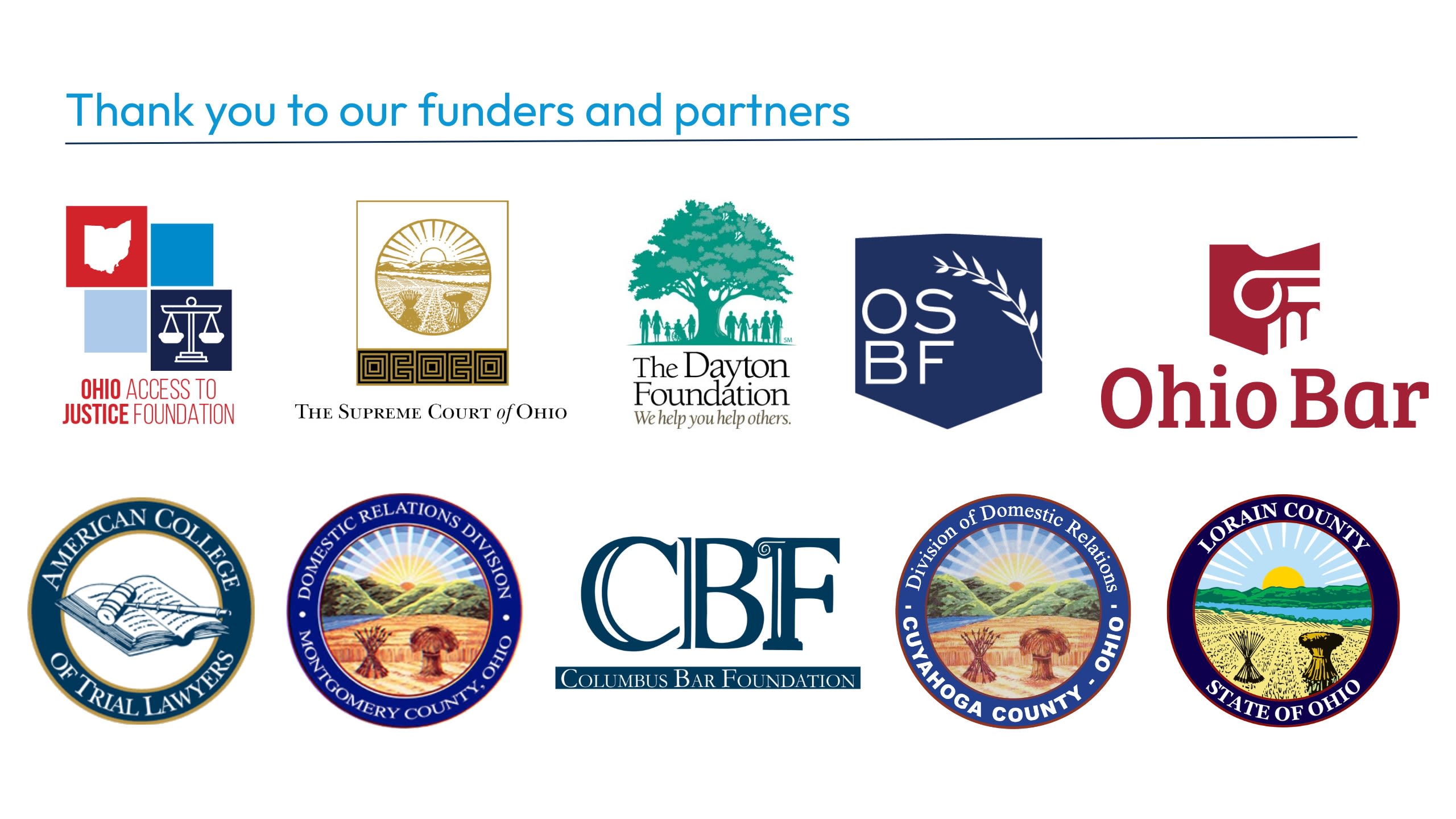 None of this progress would be possible without the dedication and collaboration of our partners, funders, and supporters. We are grateful to everyone who works alongside us to expand access to justice. Your support fuels our mission and helps Ohioans access the legal information, tools, and resources they need to achieve justice for themselves and their families.